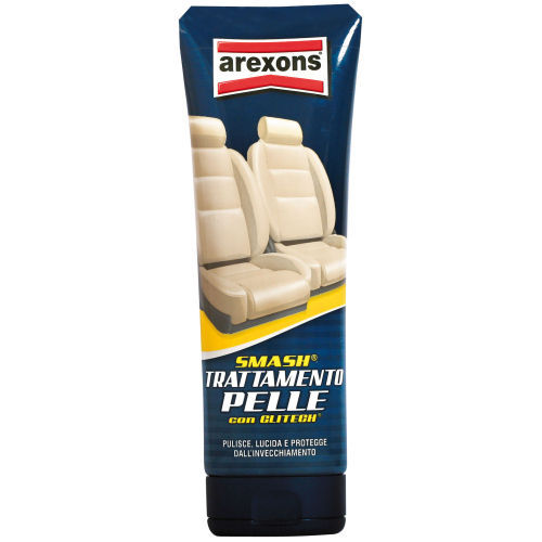 SMASH TRATTAMENTO PELLEApplicazione: rivestimenti in pelle. Specificatamente studiato per pulire, lucidare e proteggere sedili e rivestimenti in pelle dell'auto. L'insieme di sostanze detergenti ed emollienti a base di glicerina e cere naturali nutrono, curano e mantengono nel tempo la naturale morbidezza, i colori e l'aspetto originale della pelle, prevenendone la screpolatura. E' gradevolmente profumato e lascia una piacevole sensazione di pulito. Non contiene solventi e siliconi. Confezione: tubo 200 ml con flip-top (codice 8313). |