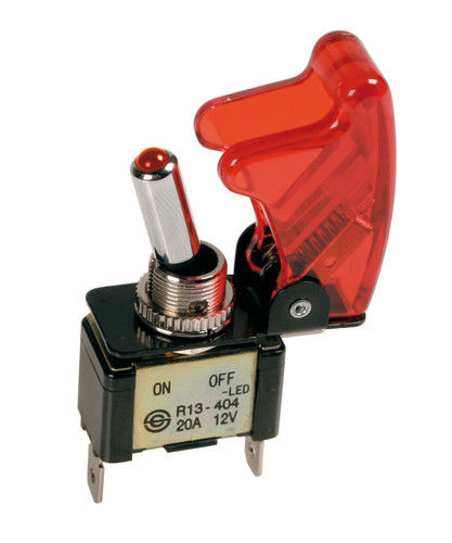 45556 Interruttore a leva con sicura - 12V - Rosso - 20A Con spia a Led